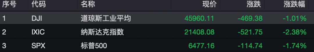 截至收盘,纳指跌521.75点,跌幅2.38%,较去年10月29日的历史高点累计下跌逾10%;标普500指数跌1.74%,道指跌1.01%。标普500指数和纳指录得2月28日美以伊冲突以来的最大单日跌幅。